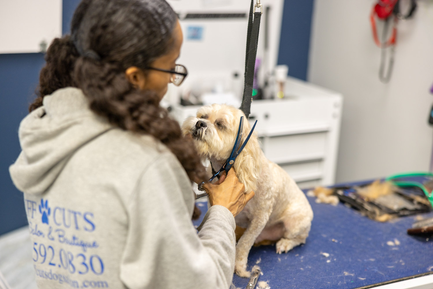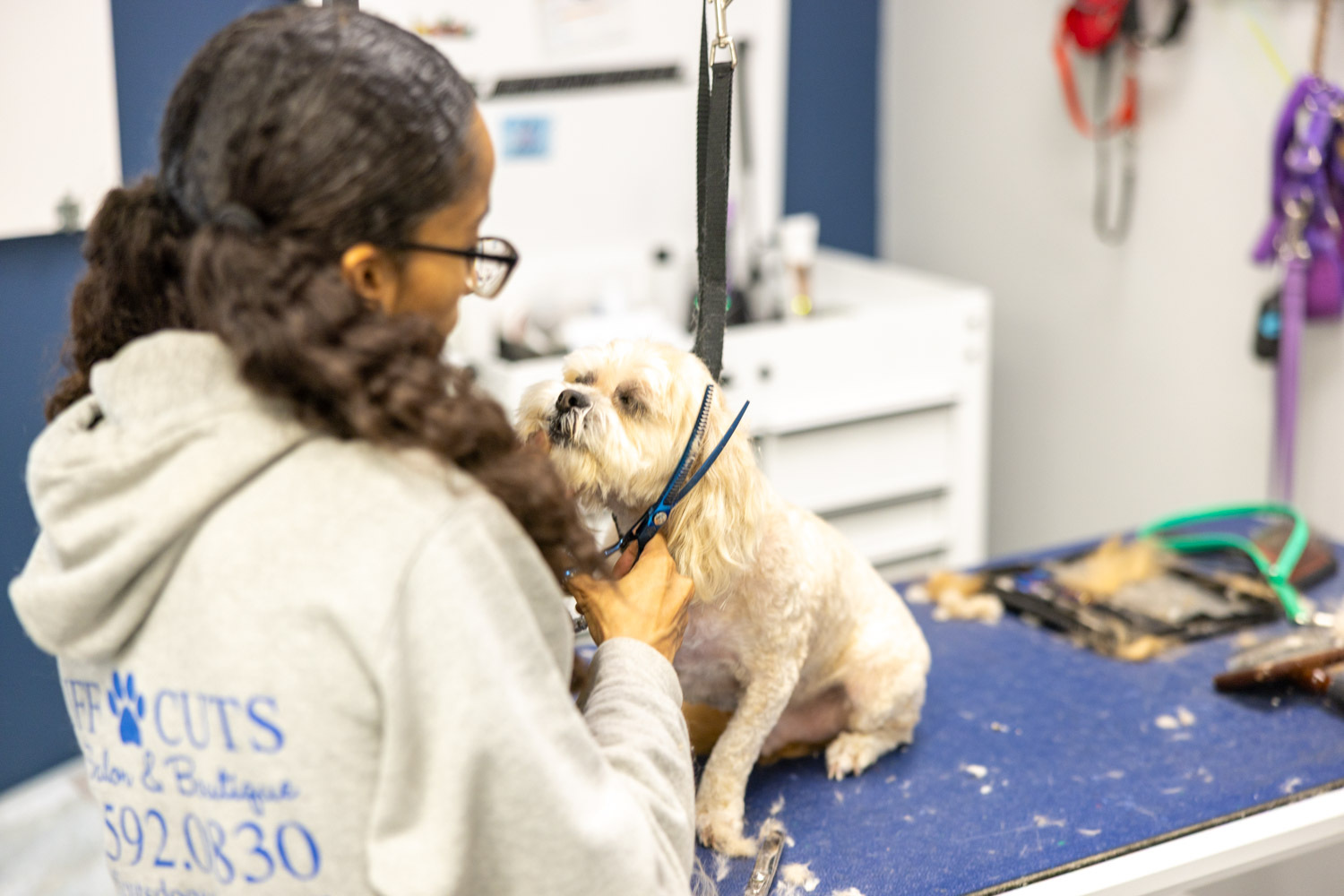 At Ruff Cuts, we're more than just groomers—we're dog lovers at heart. This love drives us to maintain the highest standards of quality in everything we do. From the moment you and your pup walk through our doors, you'll feel the difference that genuine care and professional expertise can make. We're equipped to handle any of your pup's needs, ensuring they receive the best possible care and love under our roof.